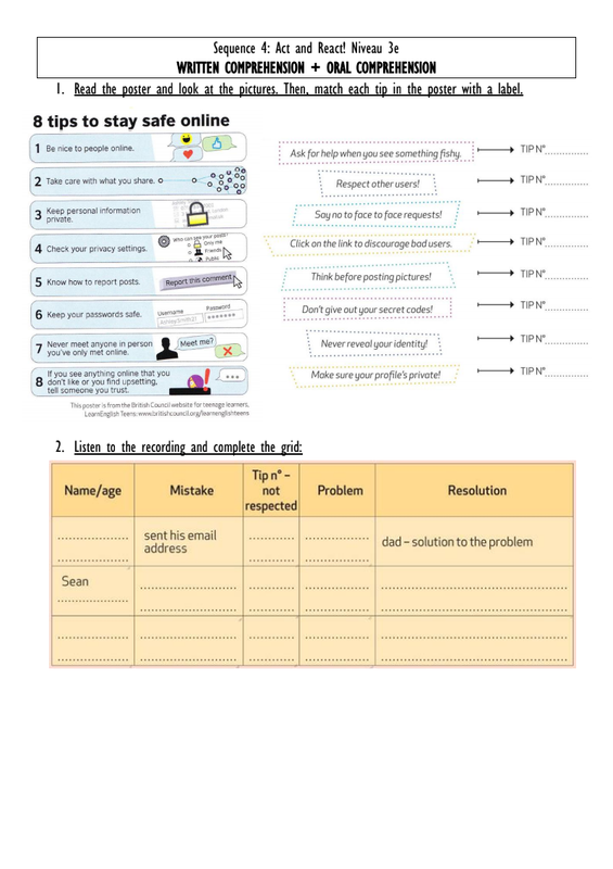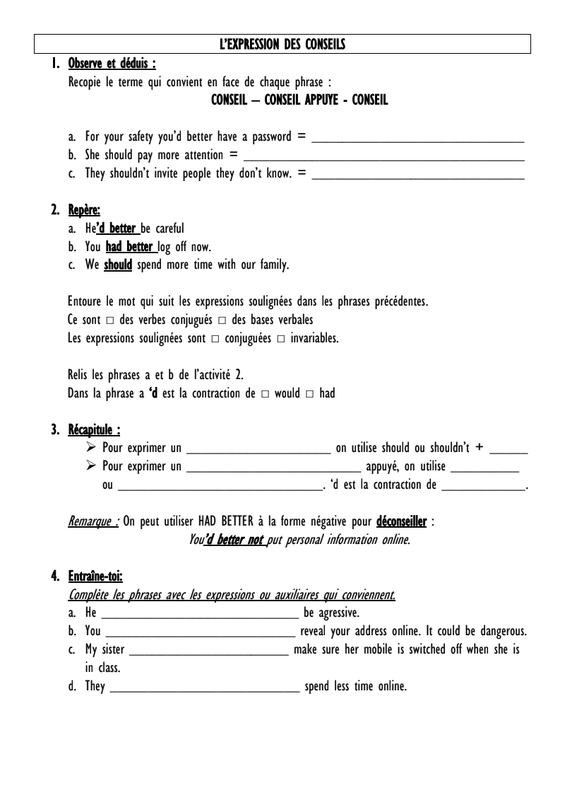 L'Expression Du Conseil = fiche de PRL + exercices.